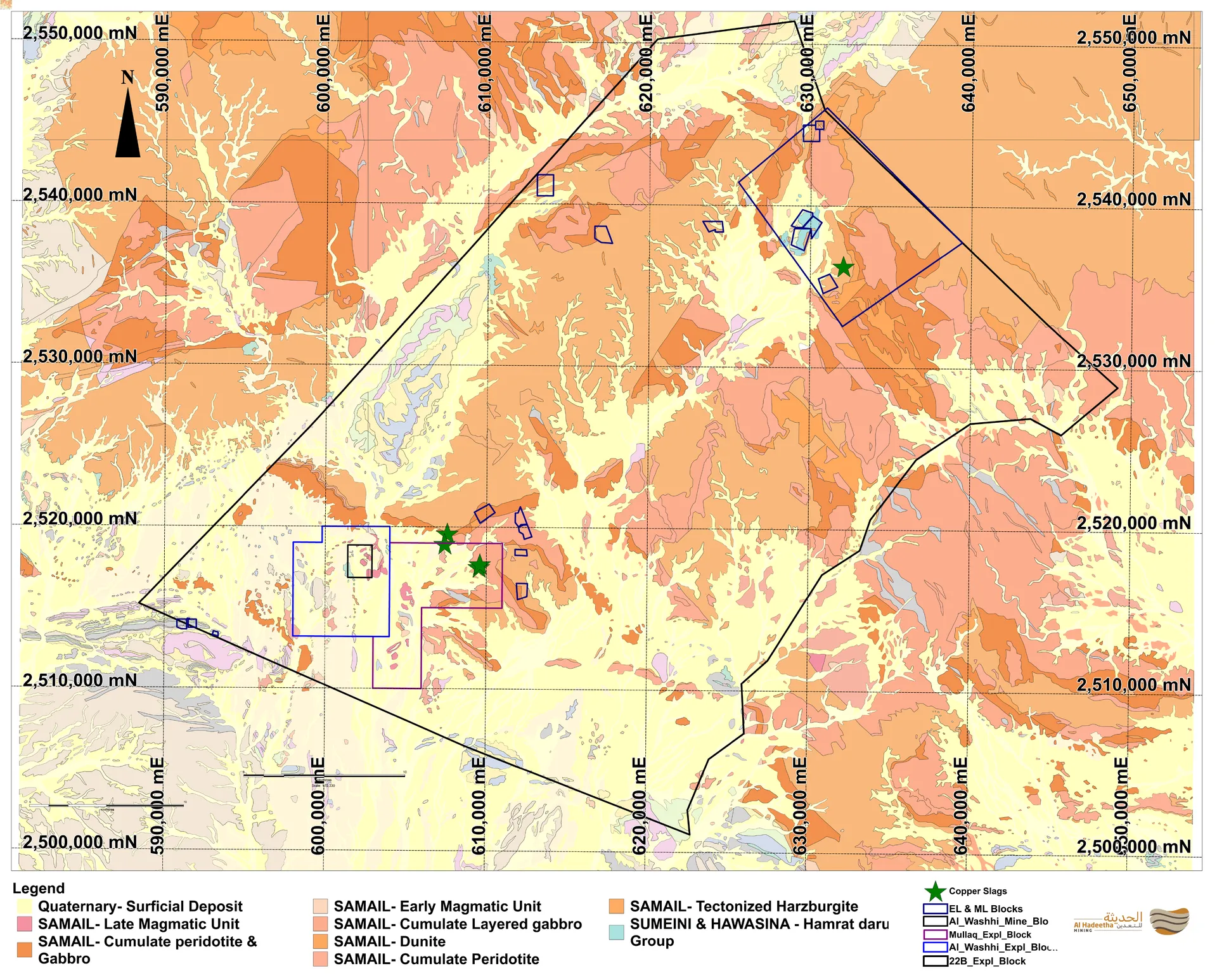 Following the issuance of a Royal Decree granting Al Hadeetha Mining LLC (AHML) exploration rights for Block 22B, the company initiated preparations to define strategic work programs, allocate resources, and establish a budget framework in alignment with the Government of Oman’s exploration commitments.